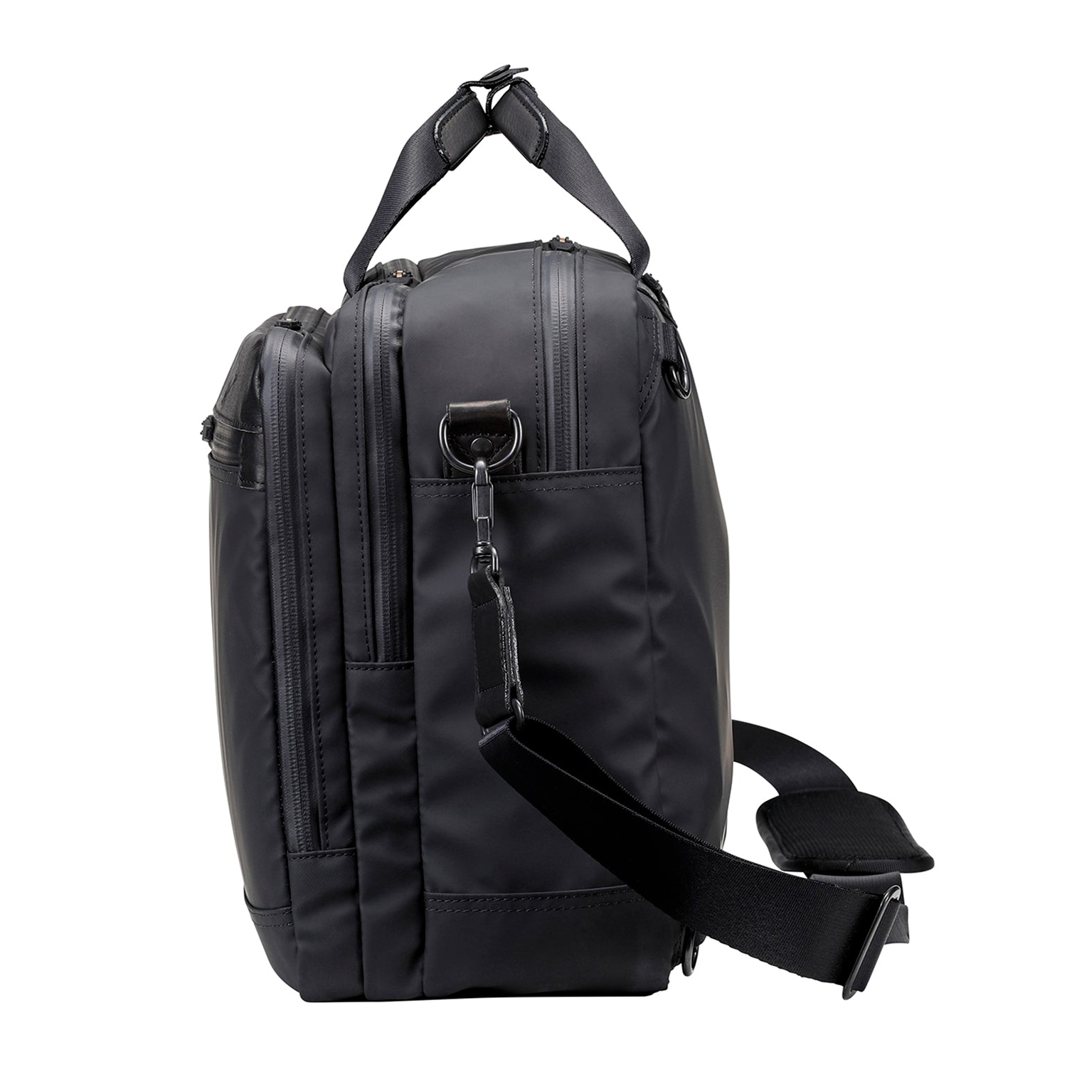 - 営業・通勤・自転車そしてスーツ・カジュアルスタイルにとオールマイティなBAGです。マットブラックの落ち着いた雰囲気とシルキーな手触りに加え、「急な雨から内容物と鞄を守るウォータープルーフ3WAYBAG」をテーマにデザインいたしました。
