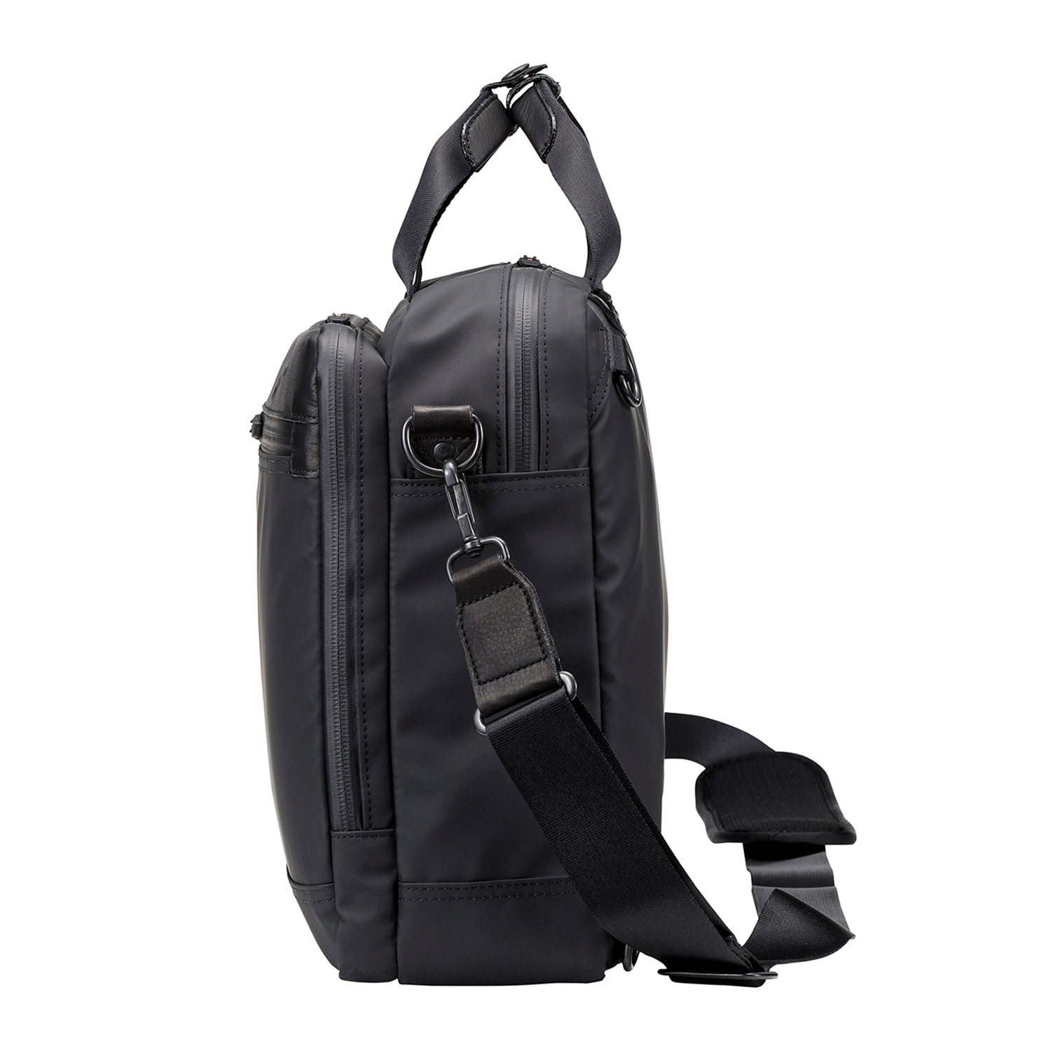 - 営業・通勤・自転車そしてスーツ・カジュアルスタイルにとオールマイティなBAGです。マットブラックの落ち着いた雰囲気とシルキーな手触りに加え、「急な雨から内容物と鞄を守るウォータープルーフ3WAYBAG」をテーマにデザインいたしました。