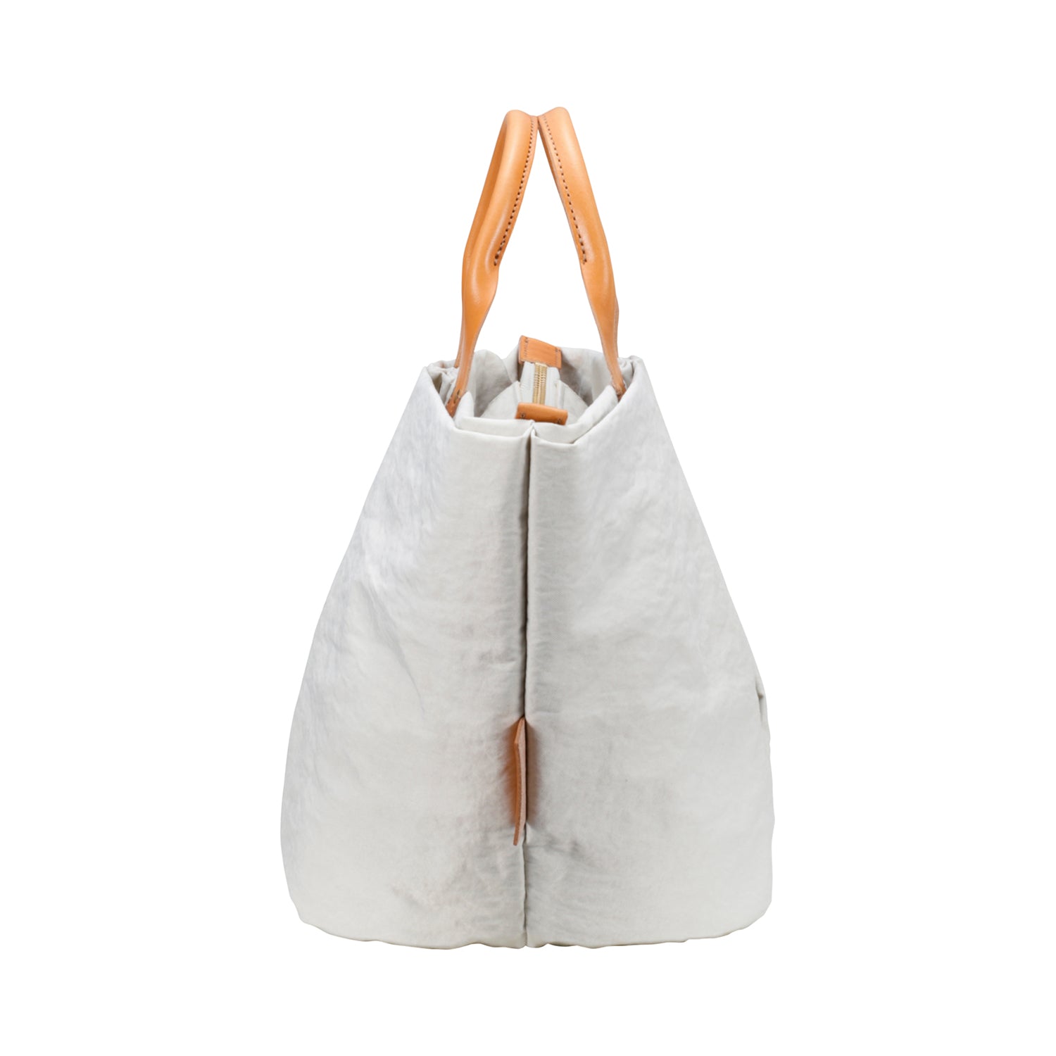 - 石川県の「小松精練」が開発したナイロン素材「KONBU-N」を使用しています。約20%収縮させて染めた後、撥水剤に反ごと漬けています。