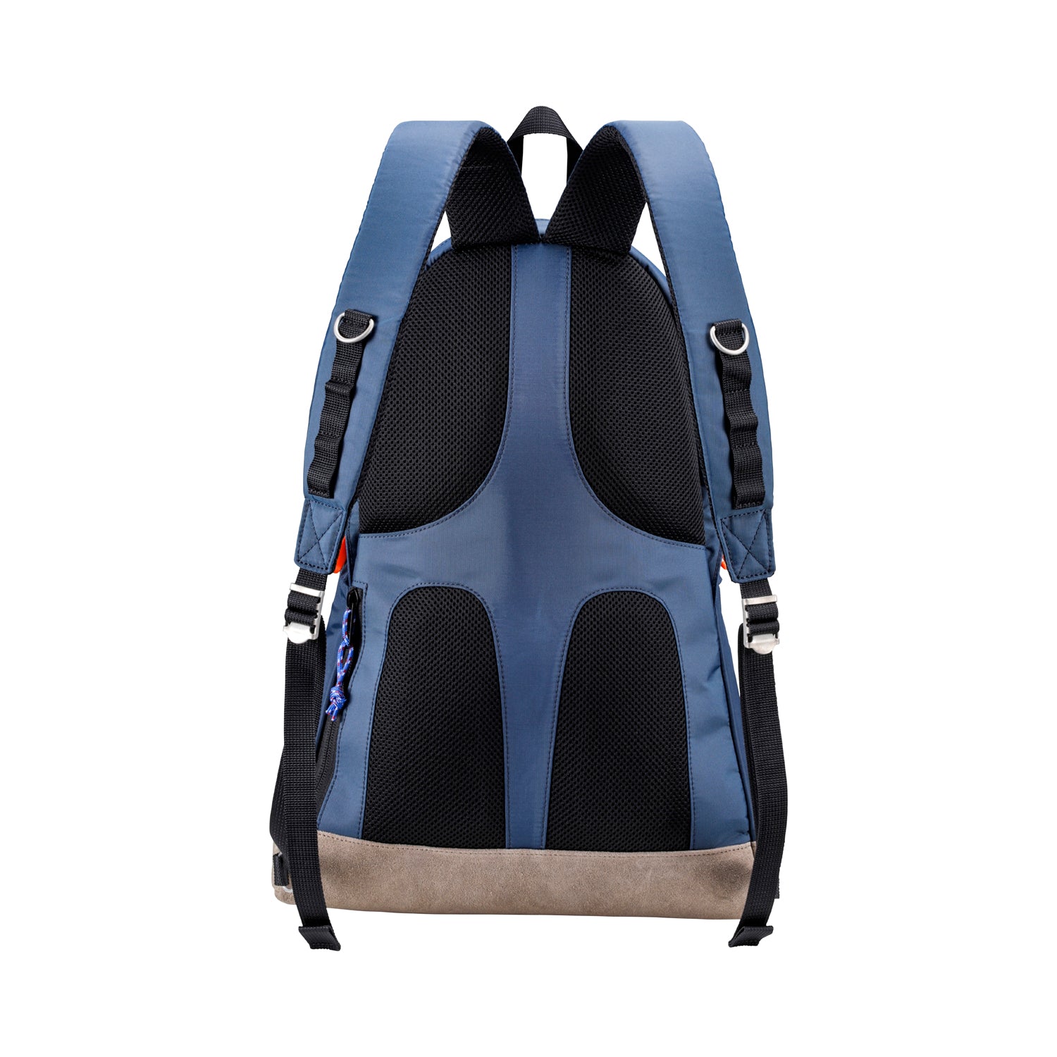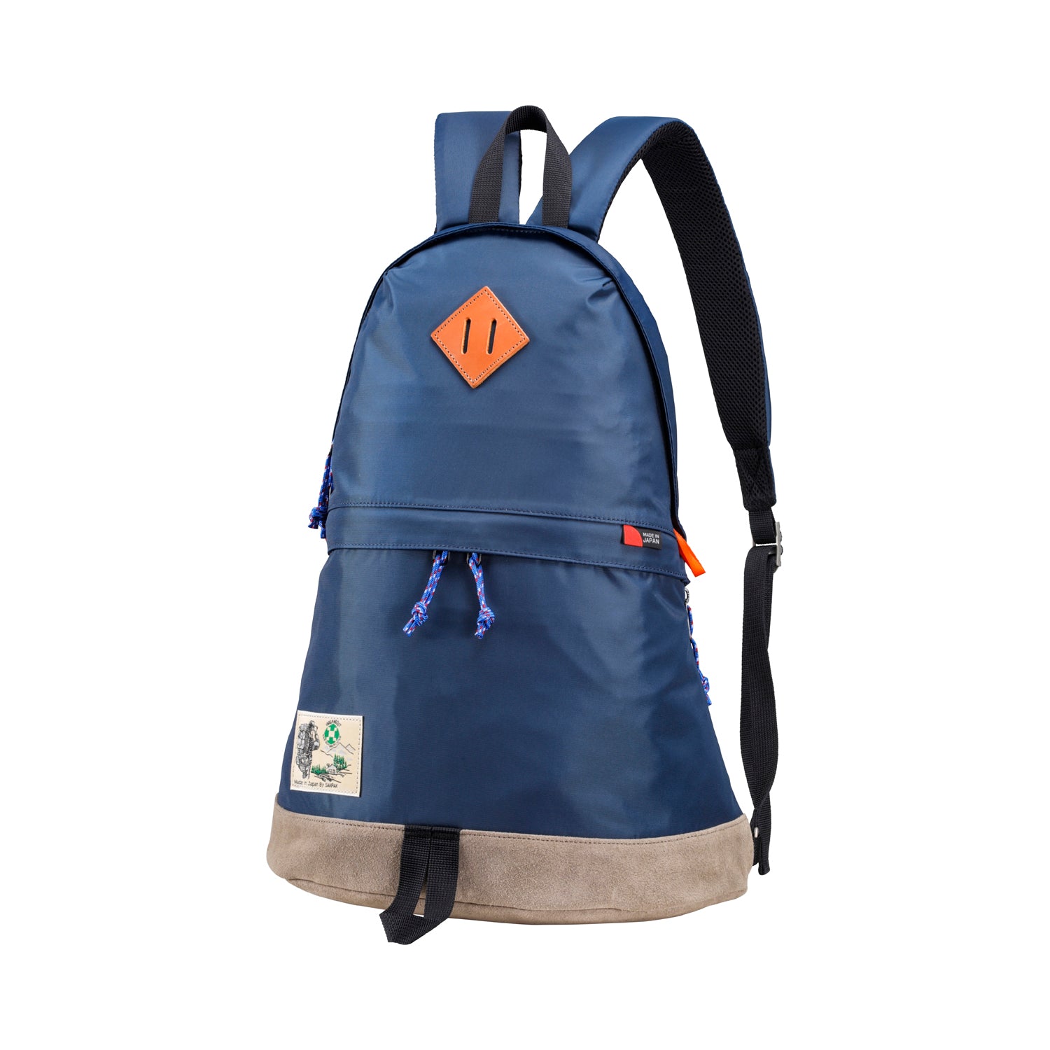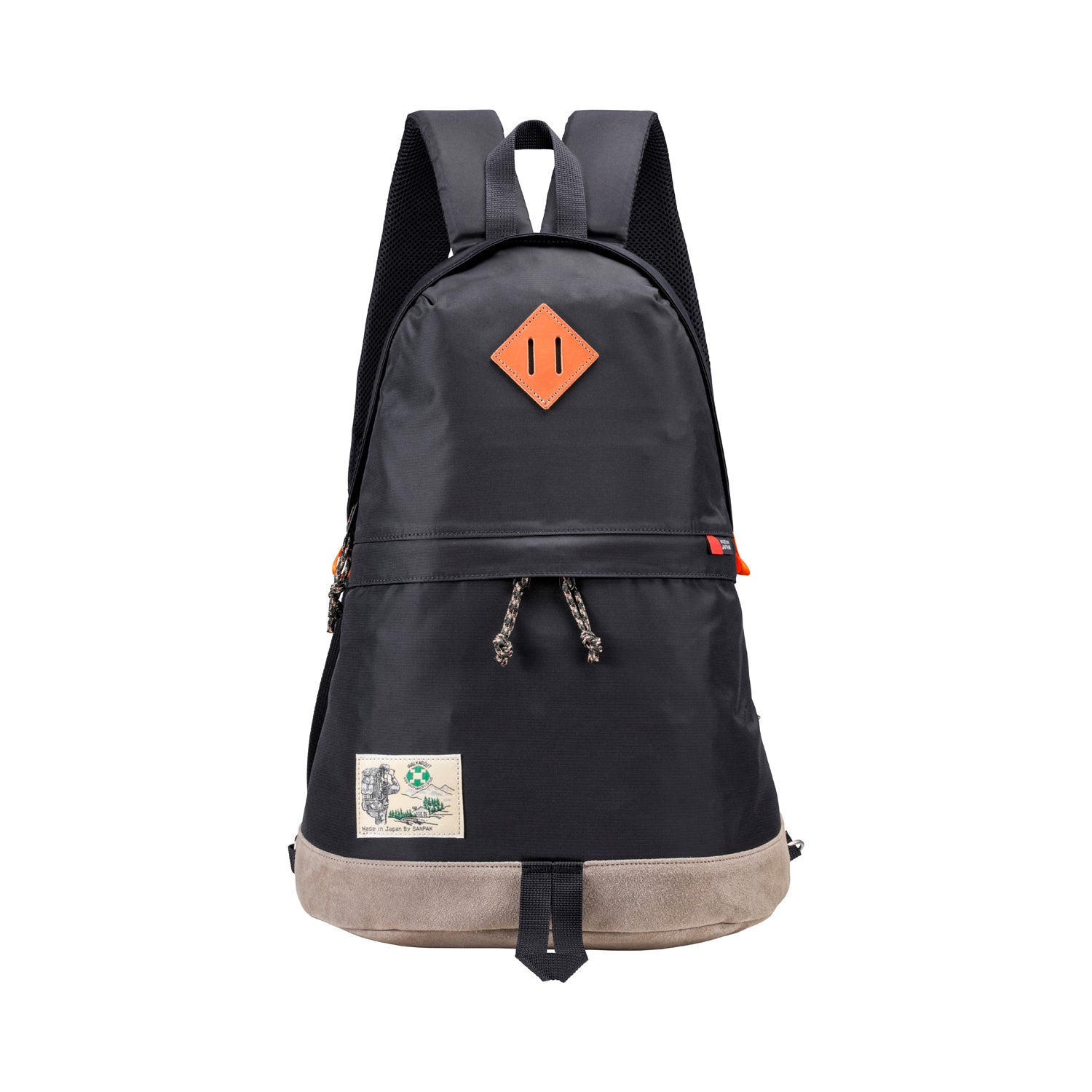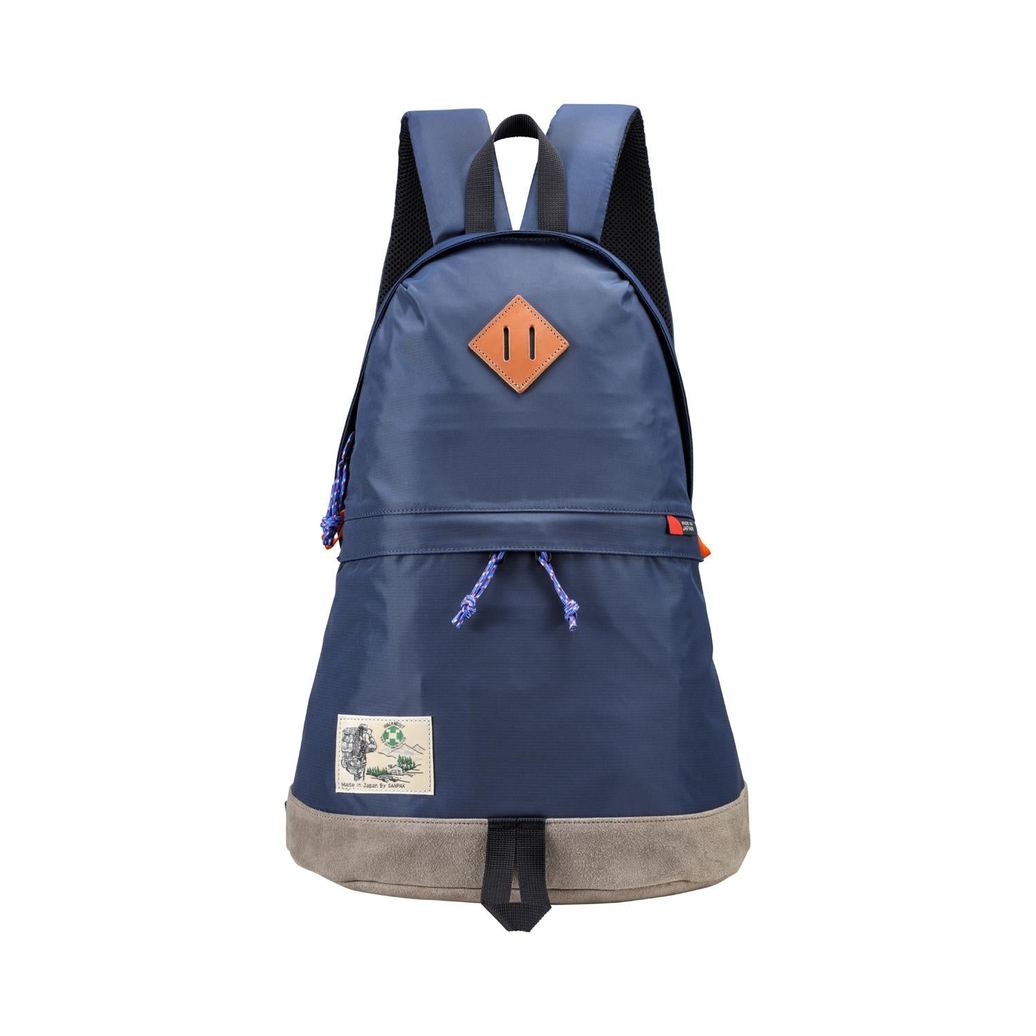 - 本体素材は、アウトドア用品では定評のある400Ⅾ(デニール)のパッククロスにテフロン加工を施し、撥水性を高めました。地面とハードに接触する底部分には、牛床革を使用。この牛床革にもフラクタル撥水加工を施し、撥水性を高めました。背面にはメッシュ素材を使用し、通気性とクッション性を追求し、軽量化を図りました。