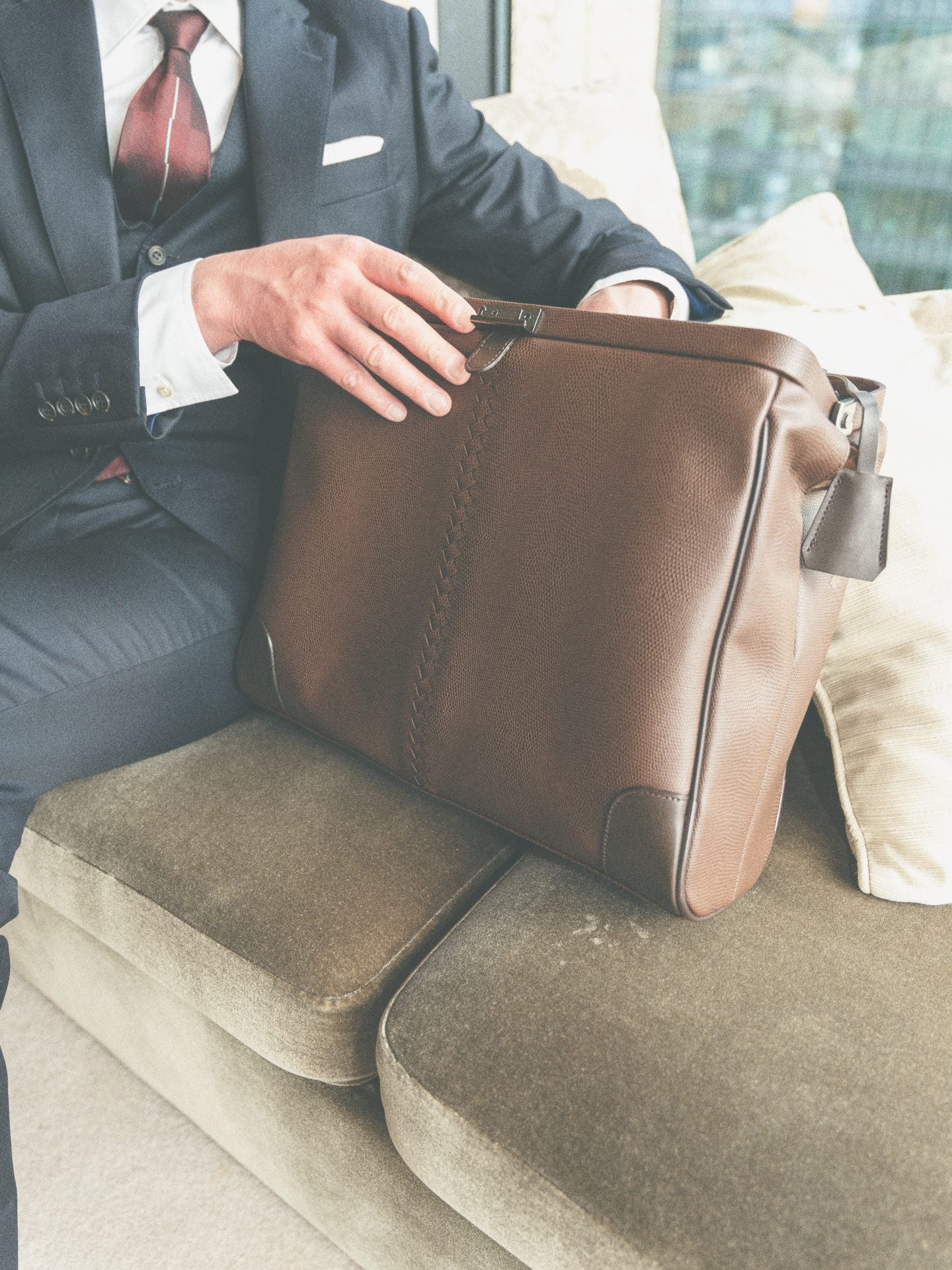 「YOUTA」と言えば、センター部分のイントレデザインです。本体生地は、シックな定番色の美しいリザードのシボをセレクトしました。