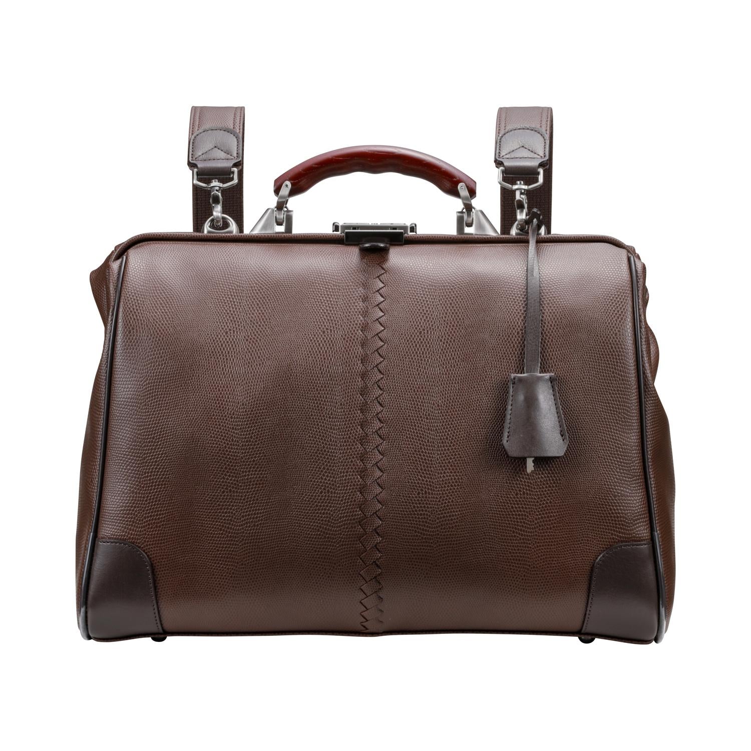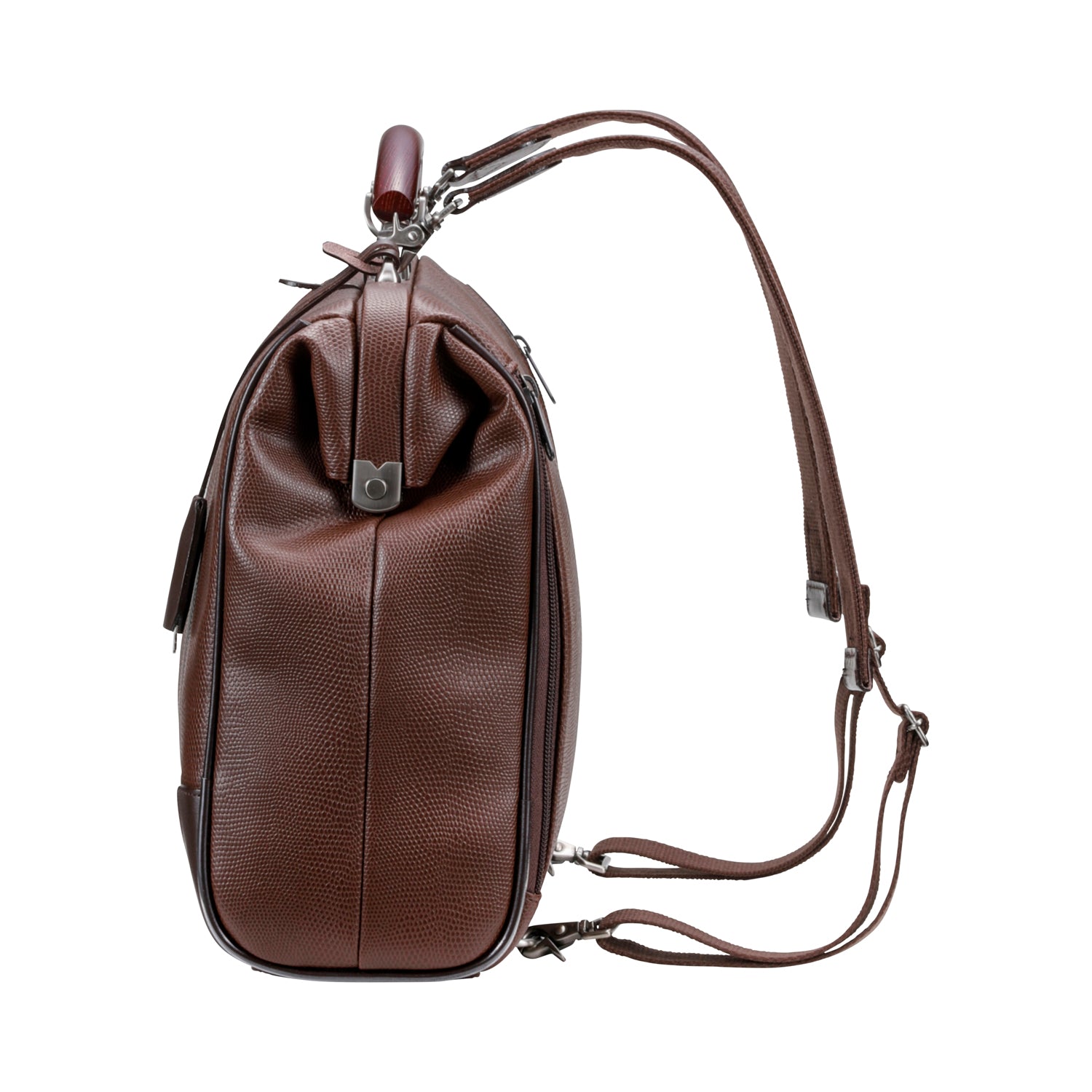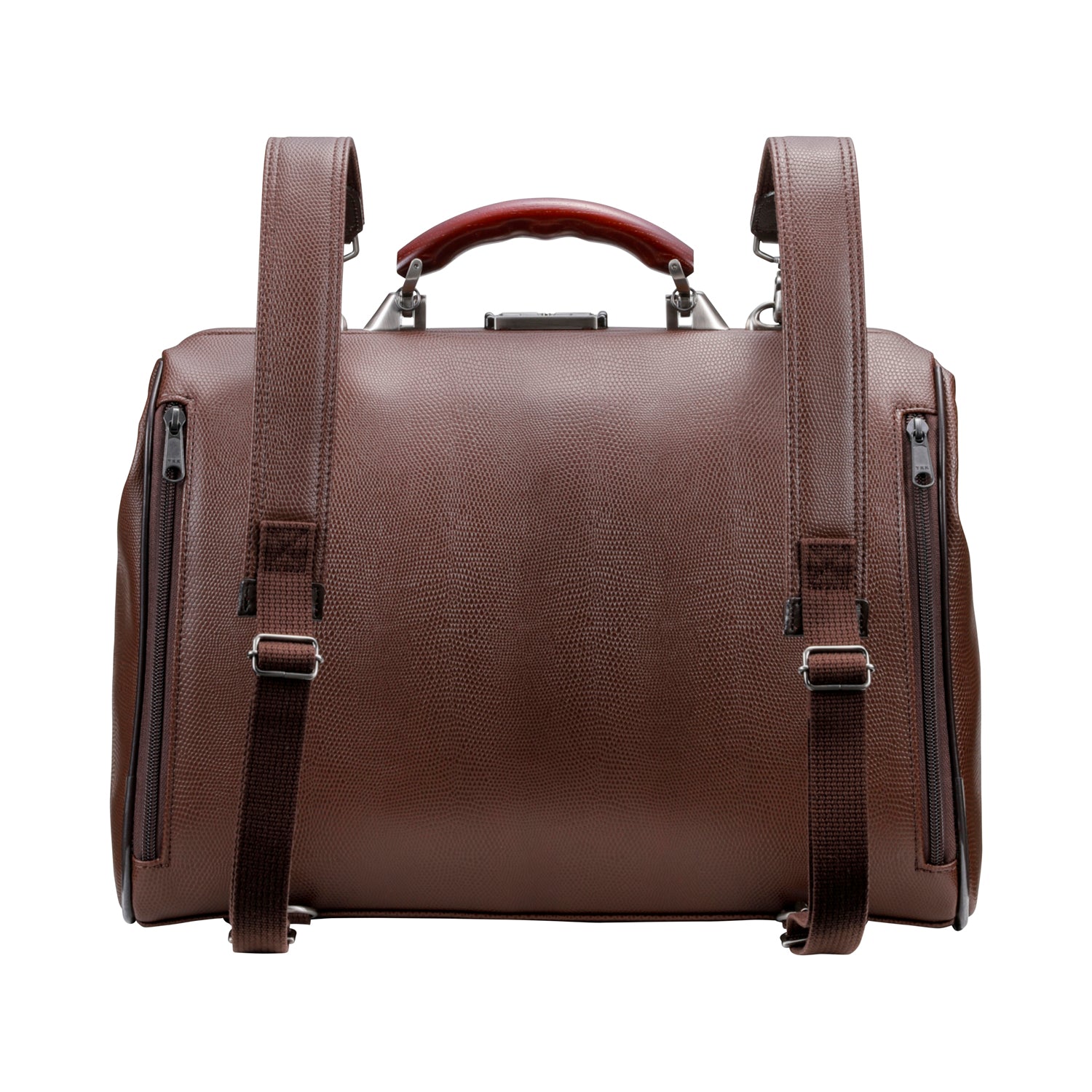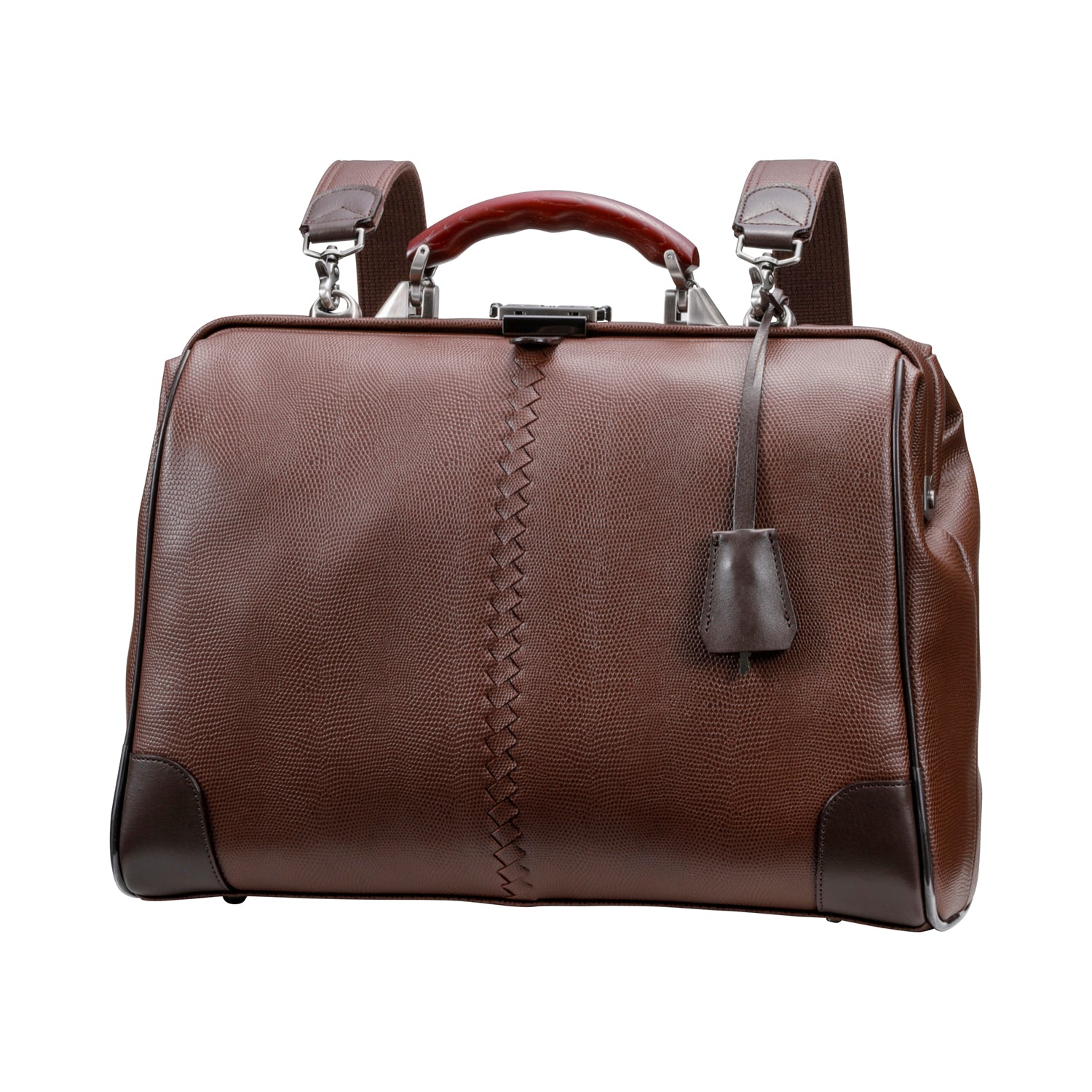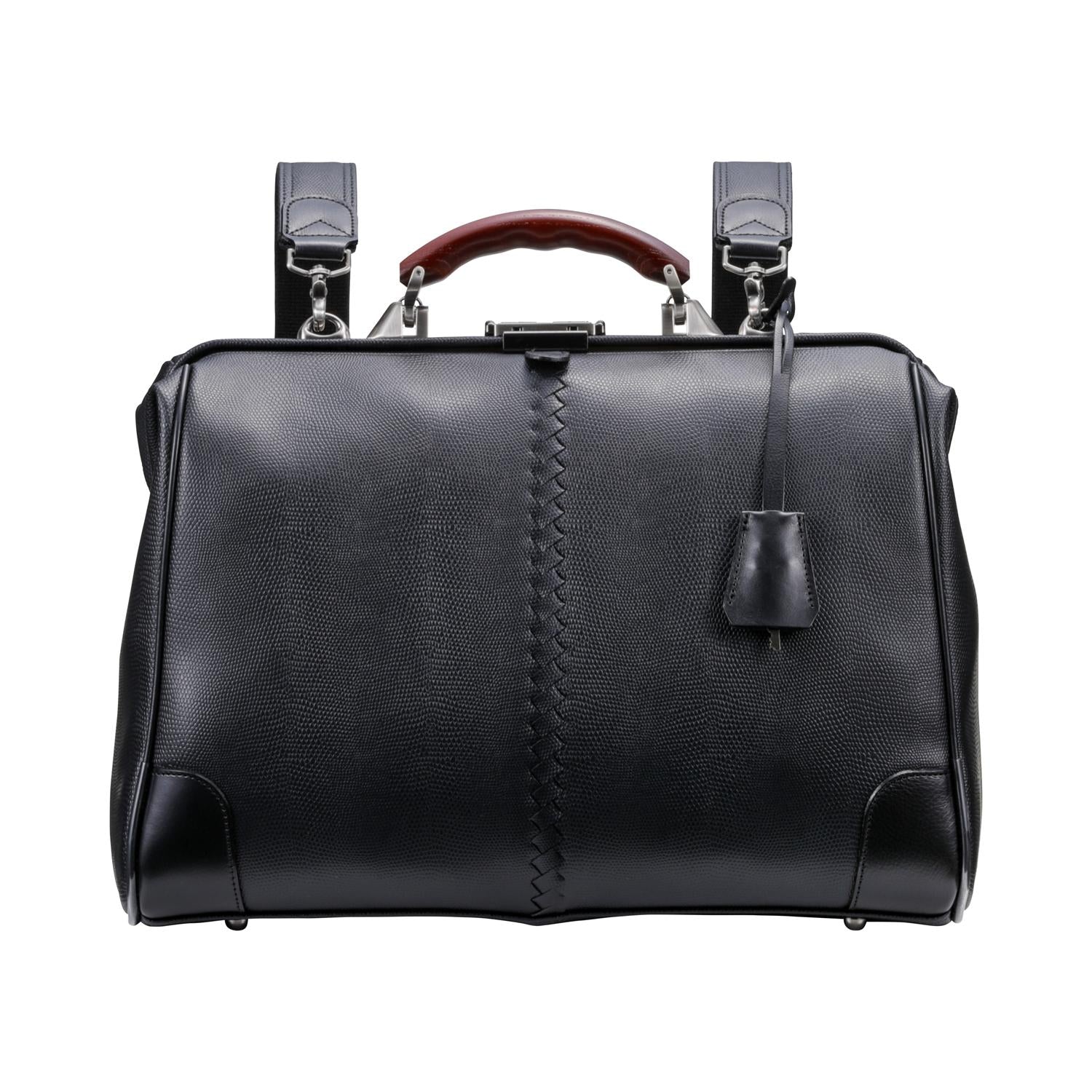 クラシックスタイルの定番型であるダレスBAGをA4サイズにして、移動に便利なリュック機能を加えました。また、ハンドルは、贅沢に欅(ケヤキ)を使用し、上品な質感と高級感のあるデザインに仕上げています。
