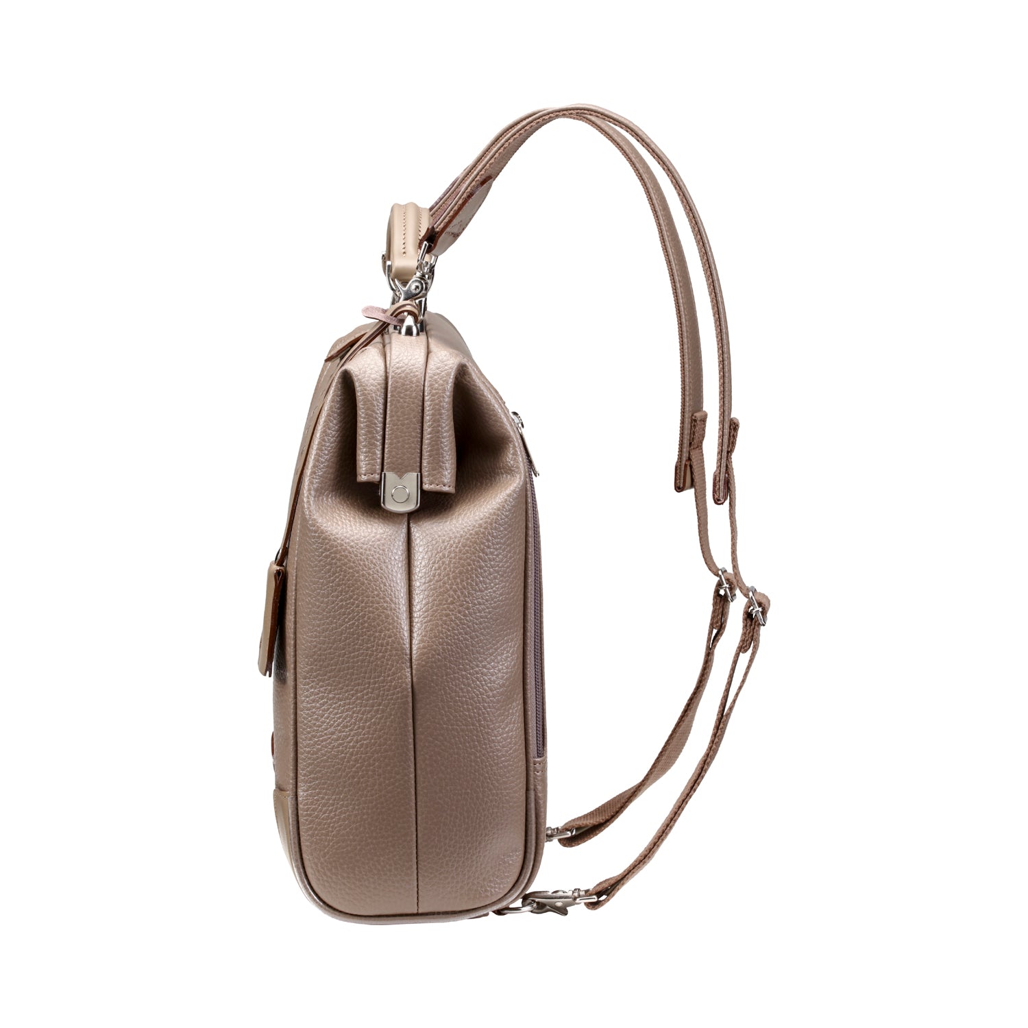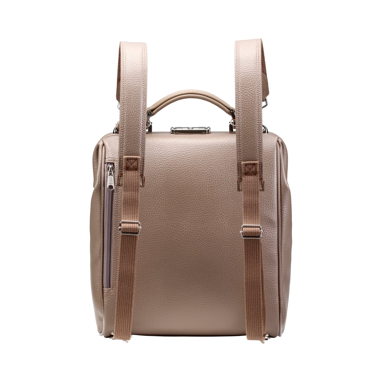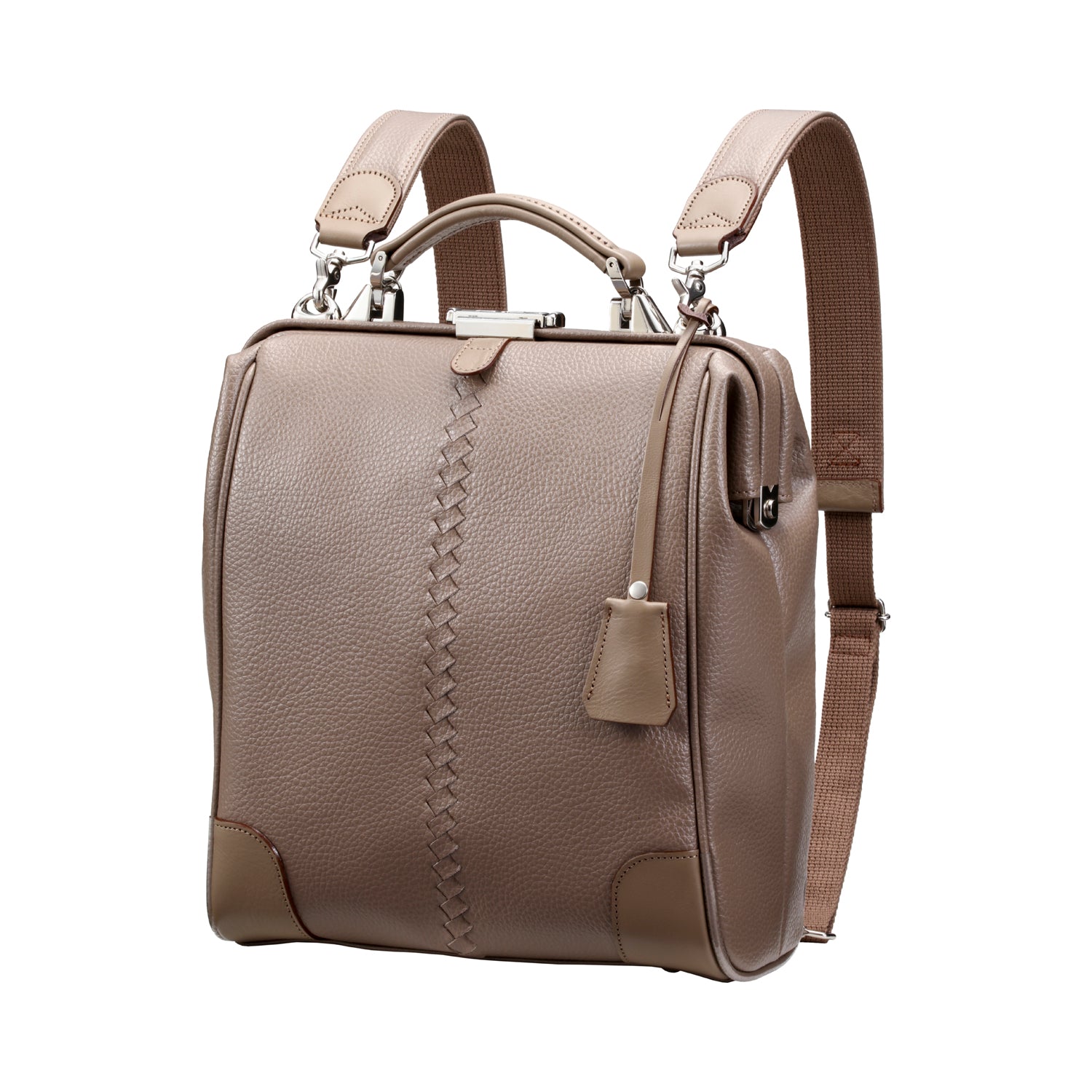 クラシックスタイルのダレスバッグをコンパクトにして日常の移動に便利なリュック機能を加えました。デザイナーとしては、ショルダーベルト持ちのスタイルはお勧めいたしません。